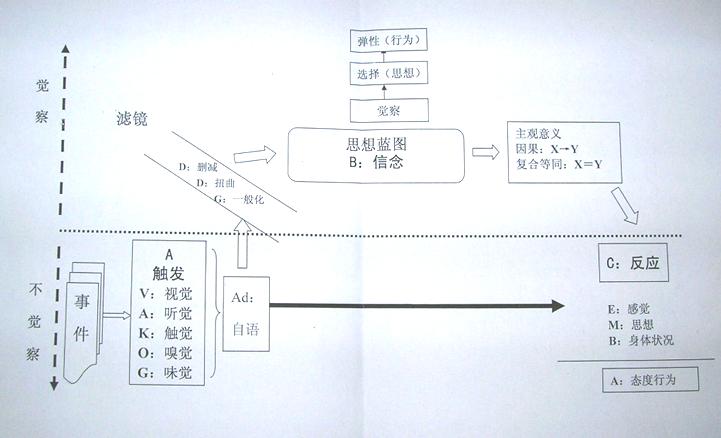 回答:那是我們后面的內(nèi)容。比如說(shuō),檢定語(yǔ)言模式就是用來(lái)還原數(shù)據(jù)的。比如說(shuō),我們的信念改變技巧就是用來(lái)處理那些限制性信念。還有次感元就是用來(lái)改變內(nèi)在表像系統(tǒng)中的經(jīng)驗(yàn)元素的。所以,當(dāng)改變這個(gè)過程中的任何一個(gè)環(huán)節(jié)的東東的時(shí)候,都可以令到最后的行為改變。